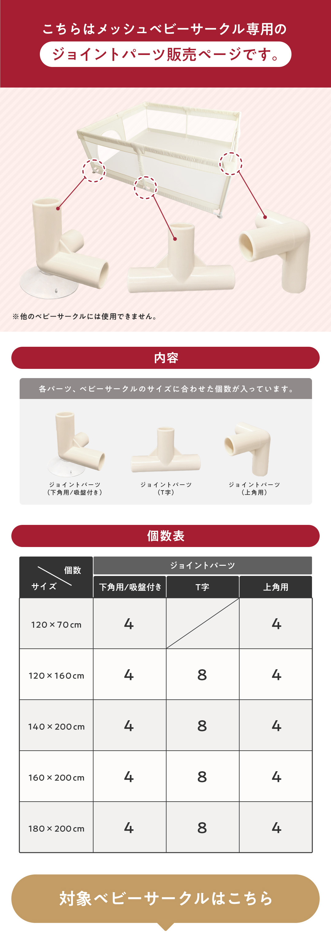 ・使用前に、ベビーサークル本体やパーツに破損や不足がないか確認してください。